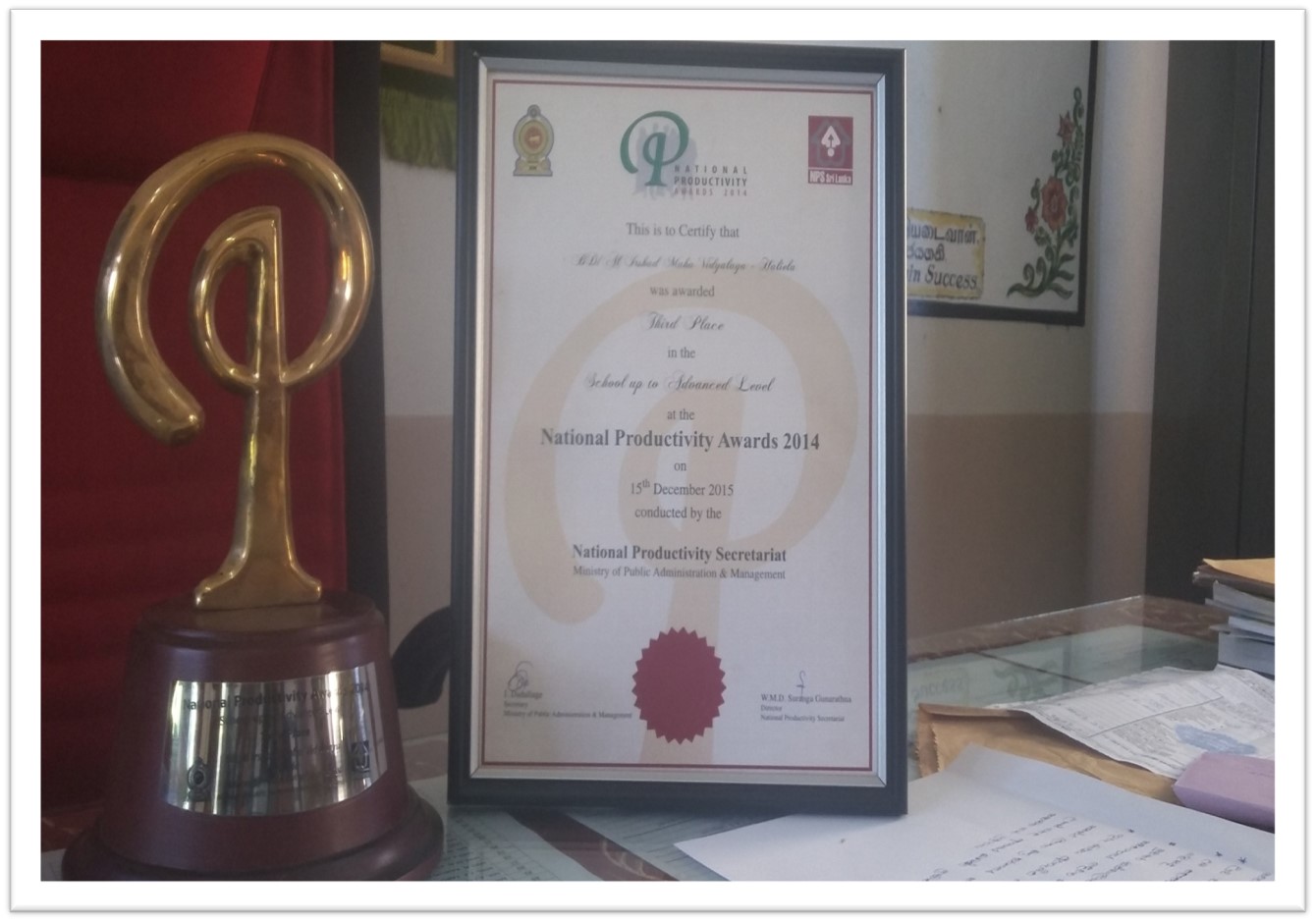 எமது பாடசாலை 2012 ஆம் ஆண்டு தொடக்கம் தேசிய உற்பத்திதிறன் போட்டியில் வெற்றி பெற்று சாதனை படைத்து வருகின்றது.